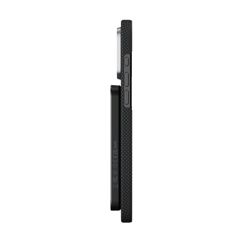 Компактный магнитный аккумулятор с поддержкой Qi2 и корпусом из 600D арамидного волокна. Заряжает iPhone по магниту, работает с Qi/Qi2‑устройствами и пополняется через USB‑C.
