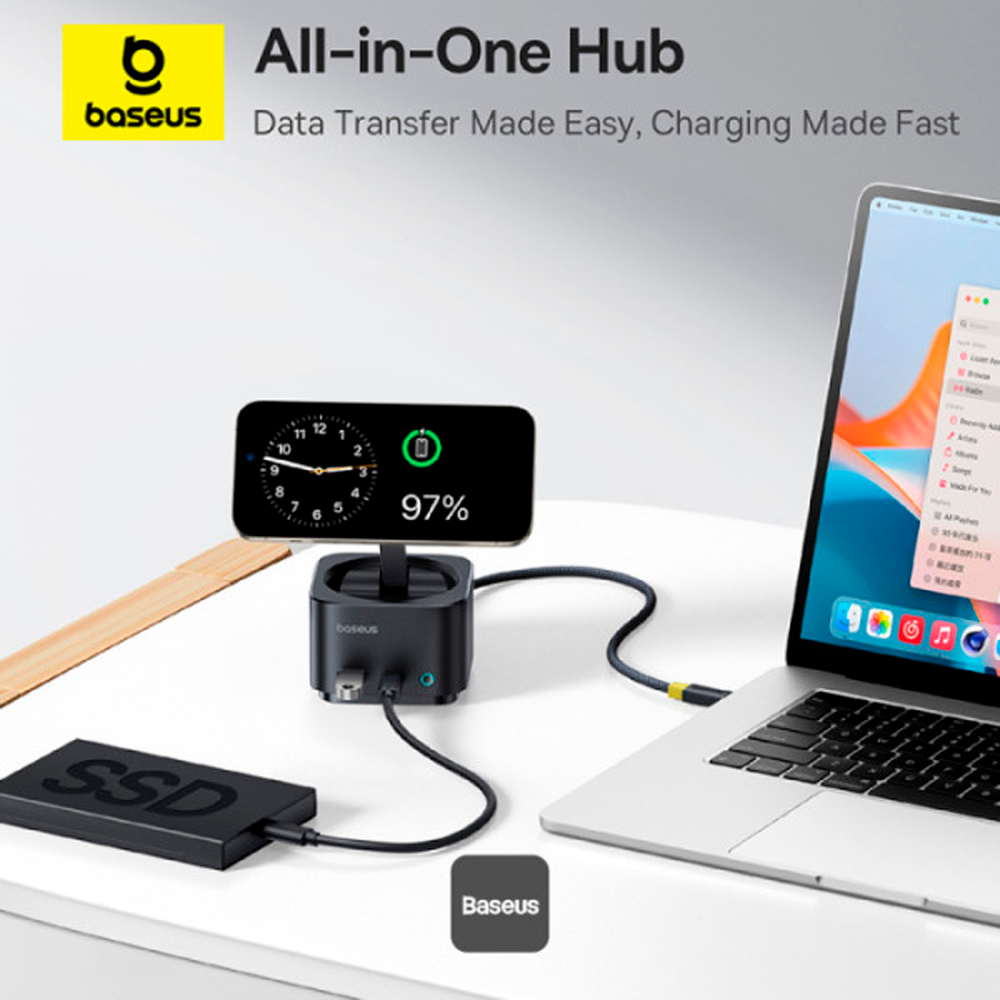 Baseus хаб MagPro II 7-port Type-C Hub Adapter + БЗУ (черный) B00072900121-00 купить в Махачкале