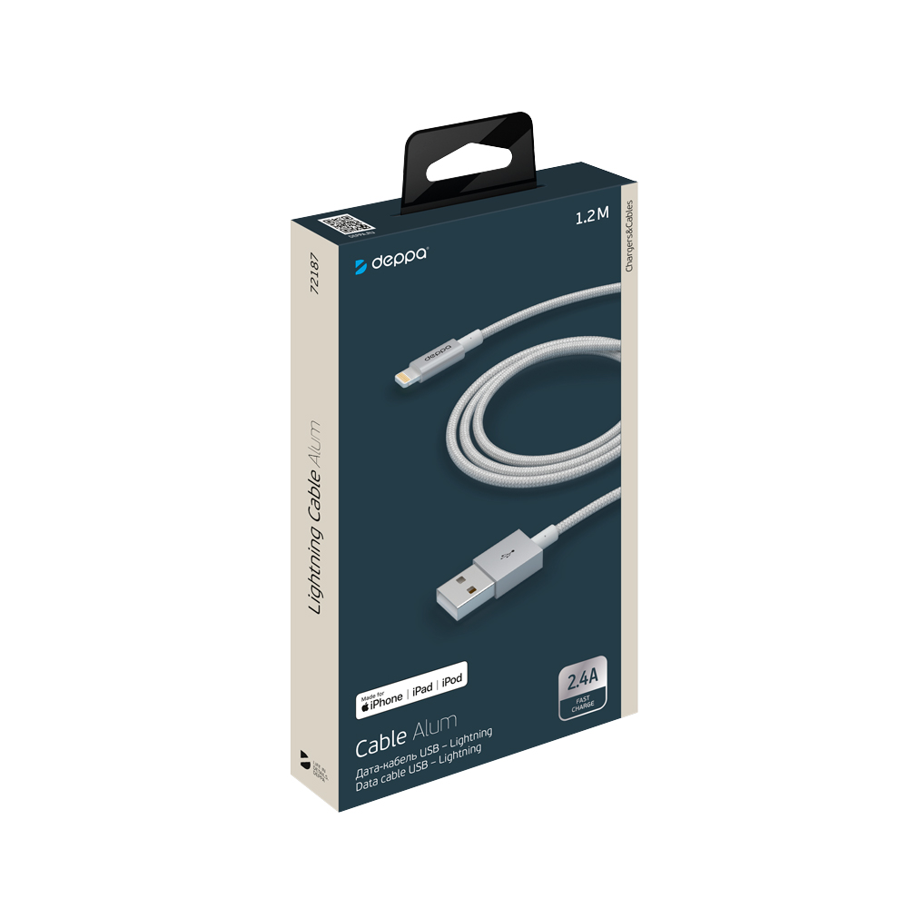 Deppa кабель USB A/Lightning 1.2м (серебристый) 72187 купить в Махачкале