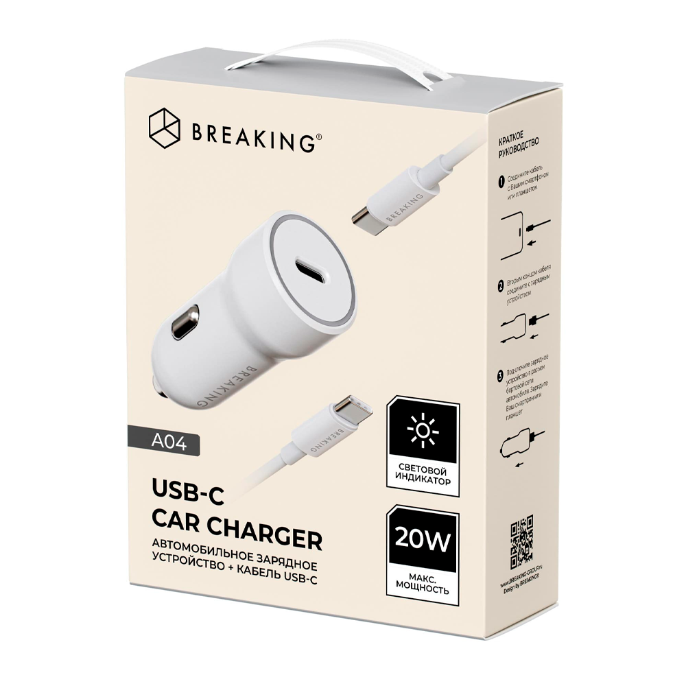 Breaking АЗУ A04 20W Type-C + кабель Type-C (белый) 23183 купить в Махачкале