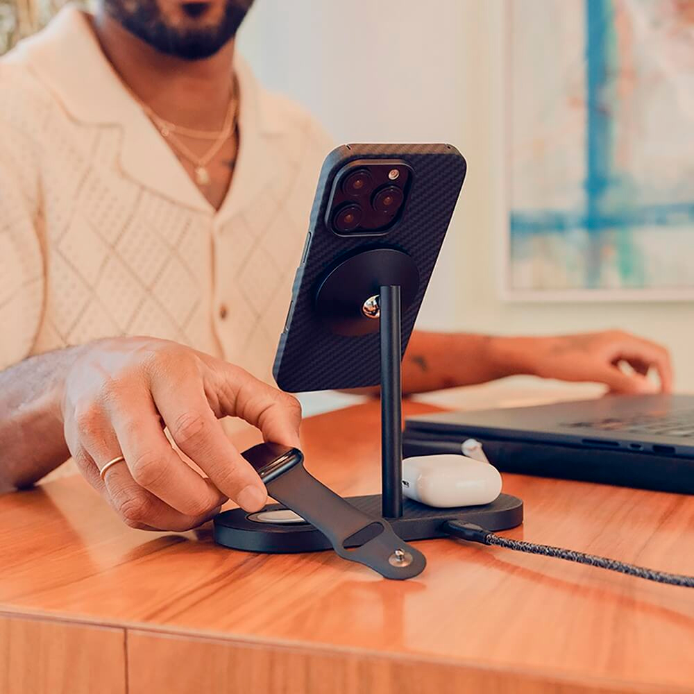 Продумана до мелочей: продолжайте пользоваться устройством при зарядке, либо закрепите его на станции и контролируйте процесс зарядки визуально. Лаконичный световой индикатор информирует о прогрессе, не привлекая к себе лишнего внимания. Нескользящее дно обеспечивает устойчивость док-станции, а значит и сохранность ваших устройств.