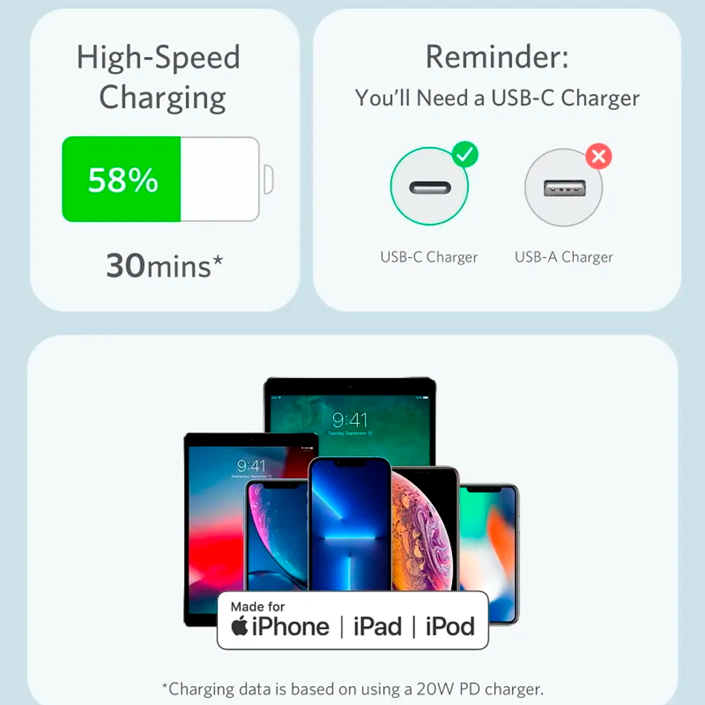 Anker кабель Type-C/Lightning PowerLine III Flow 30W 0.9м (голубой) A8662631 купить в Махачкале