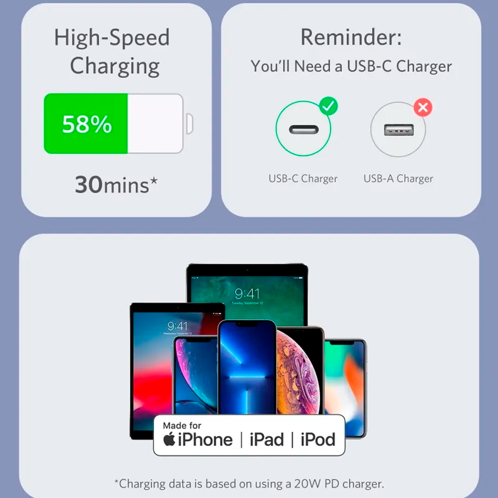 Anker кабель Type-C/Lightning PowerLine III Flow 30W 0.9м (фиолетовый) A86626Q1 купить в Махачкале
