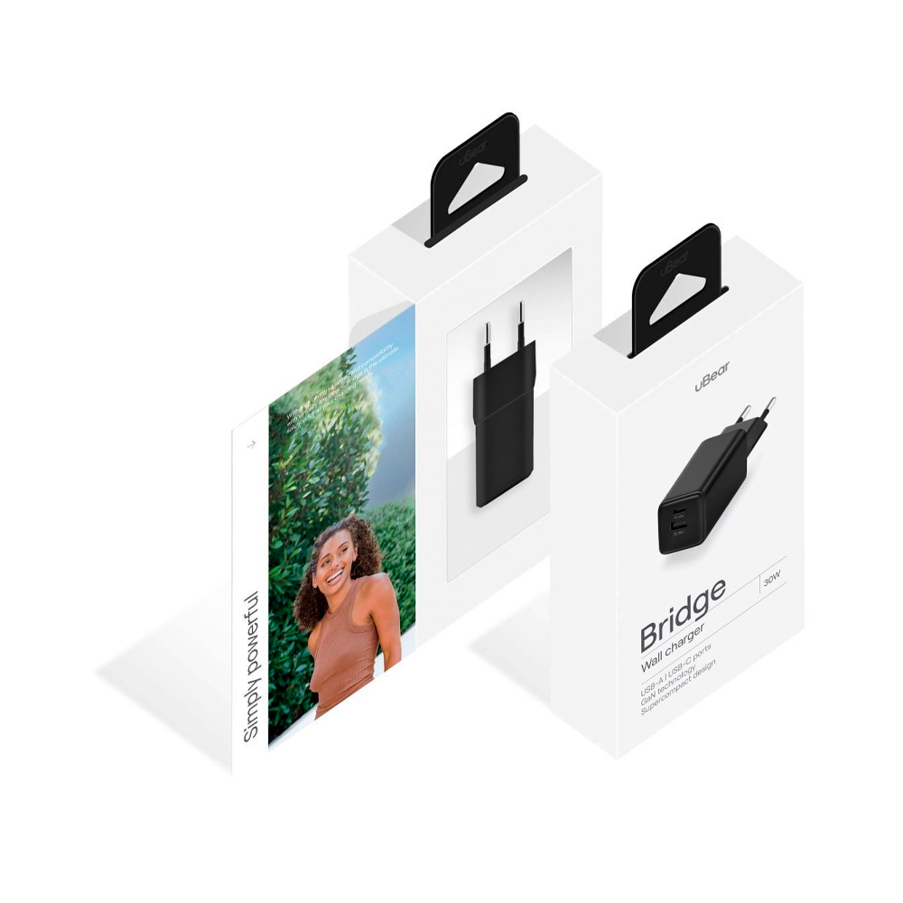 uBear Bridge GaN 30W Type‑C + USB‑A (черный) — WC31BLPD30-AC