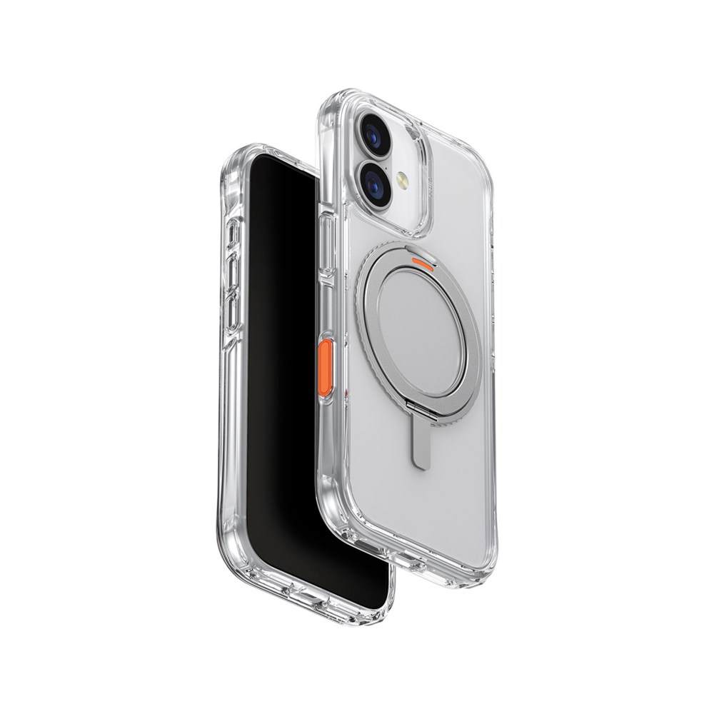 Главной особенностью чехла является алюминиевое кольцо-подставка, встроенное в заднюю часть корпуса. Оно поворачивается на 360 градусов и фиксируется под разными углами, что делает его удобным для видеозвонков или просмотра контента. Кнопка камеры выполнена в виде виртуальной Haptic-кнопки, созданной по передовой технологии, обеспечивающей точную тактильную отдачу и мгновенный доступ к камере — без лишних усилий при нажатии.